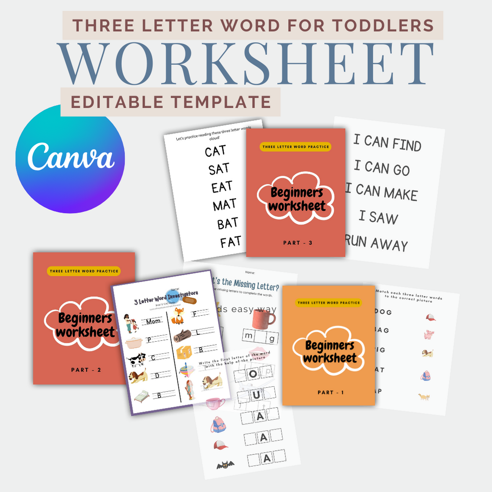 You'll get Three Letter Words Workbook all 3 parts. You can start with part 1 and slowly transit to part 2 ans 3 as your child learns the words writing and reading.